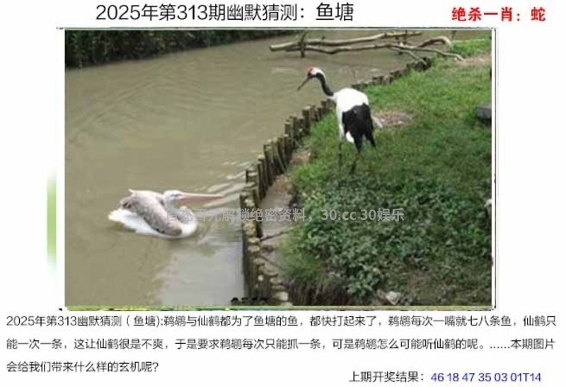 鹈鹕与仙鹤都为了鱼塘的鱼,都快打起来了,鹈鹕每次一嘴就七八条鱼,仙鹤只能一次一条,这让仙鹤很是不爽,于是要求鹈鹕每次只能抓一条,可是鹈鹕怎么可能听仙鹤的呢。......本期图片会给我们带来什么样的玄机呢? 解:鱼塘解双肖龙虎鼠狗猴马 推荐生肖:龙虎鼠狗猴 |